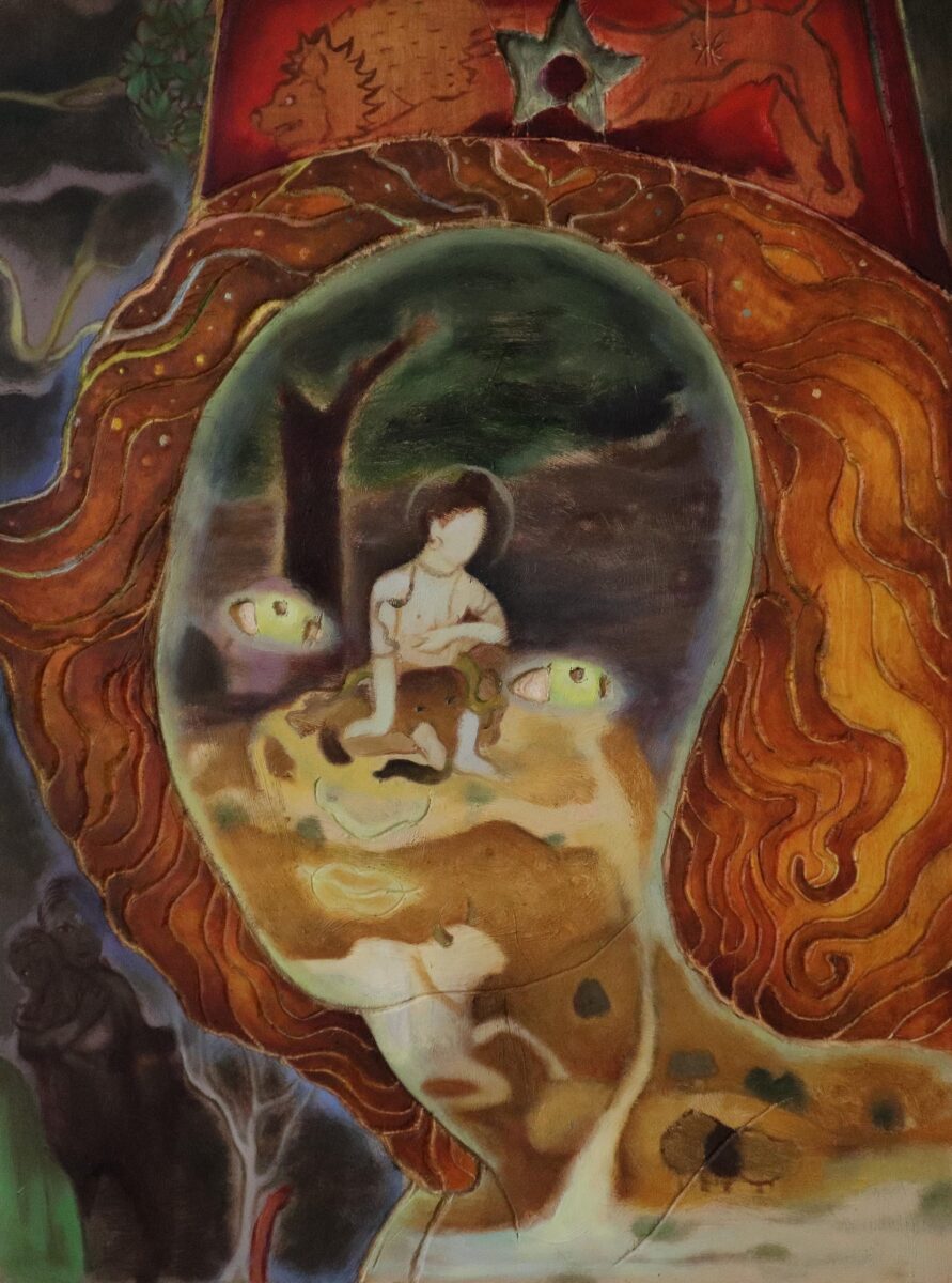 Oil on carved wood