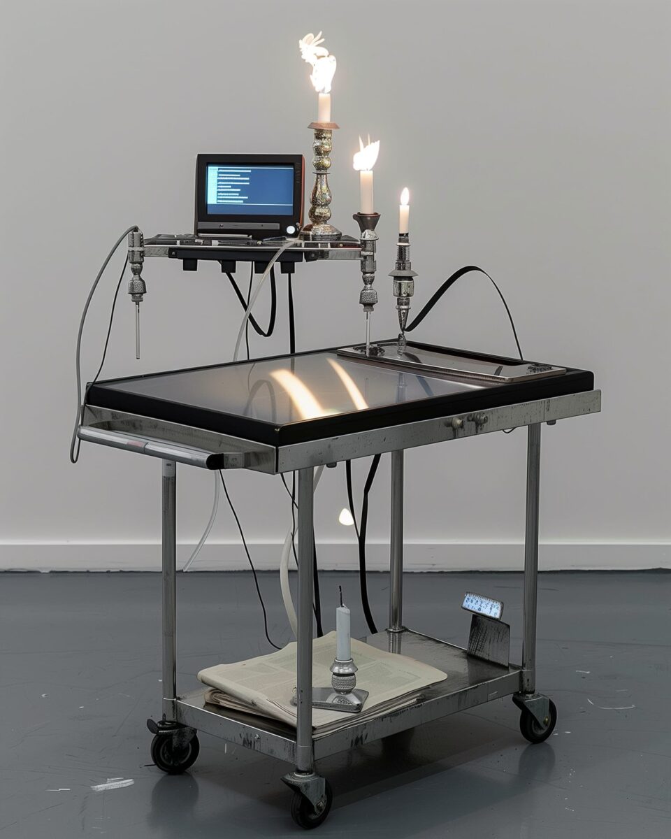 ChatGPT Screen Recording, 15-inch LCD Module, Automatic Playback Drive Module, Stainless Steel Cart, Electronic Candles, Wax, Acrylic