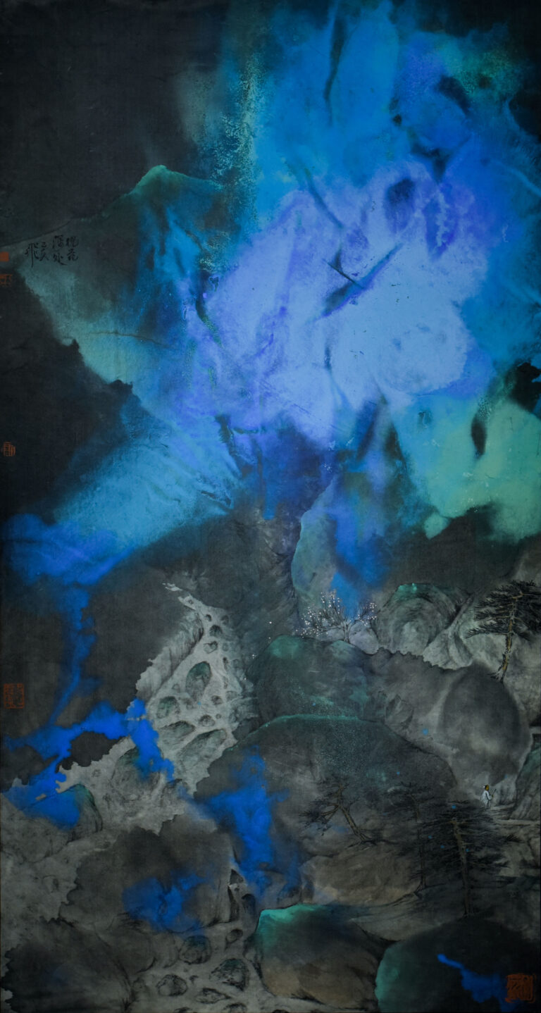 Starting from the context and the contemporary era, Pang Fei, born in 1973, has his own ideas on creation, and his works are also practicing the exploration of self-language. Pang has received relatively strict training in traditional landscape painting. In the exploration of personal style, he tried the experiment of the incidental effect of ink and materials. Combined with his perception of traditional classics, Pang developed his unique style with splash ink as the main body under the unified Chinese view of nature.