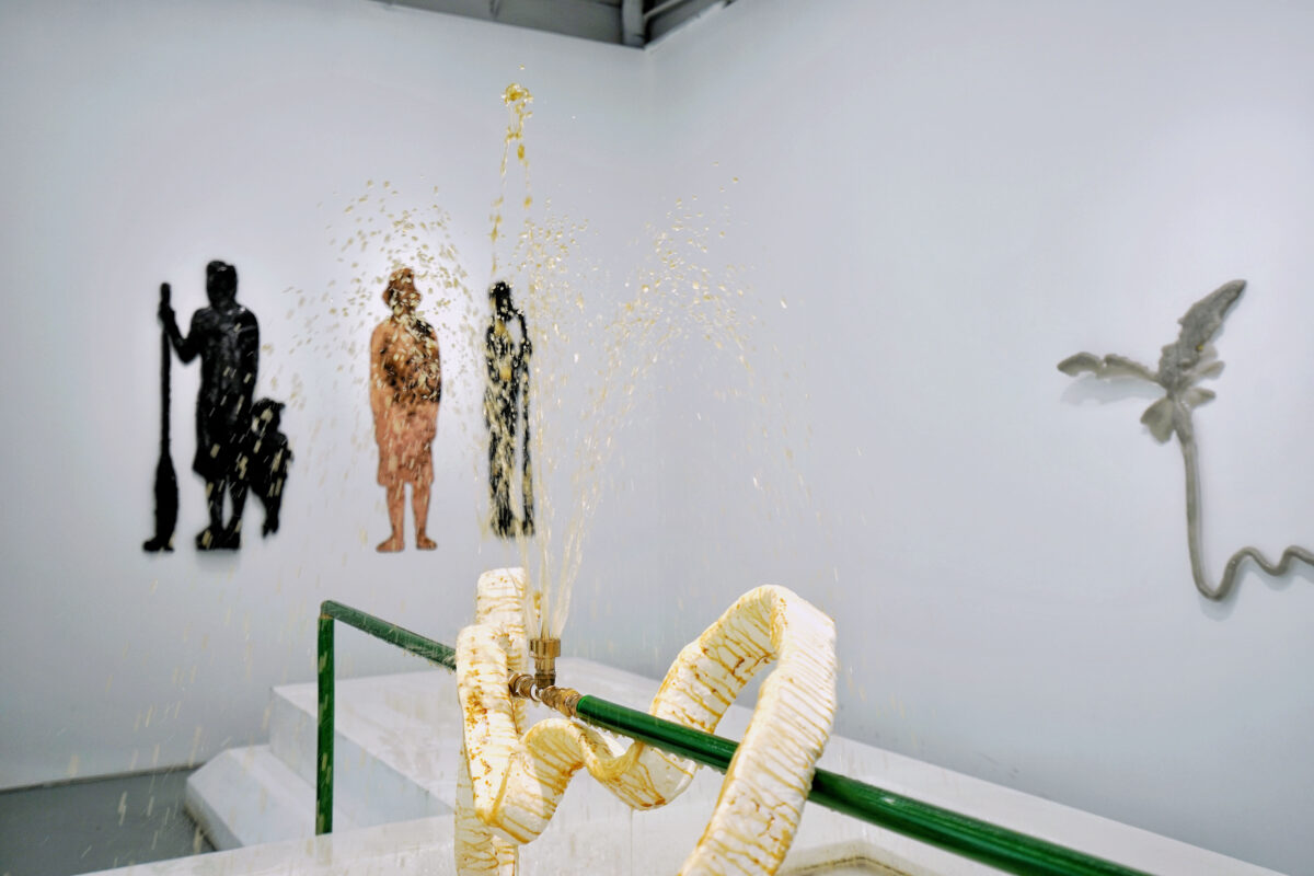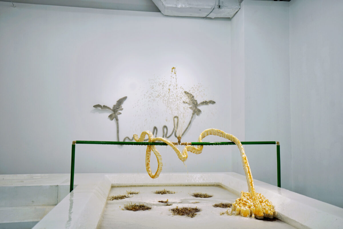 All is fast and rich nowadays, devouring us in a chaotic and violent fashion. Accelerated capitalism crumbles aboriginal cultures; yet locality and the globalized condition feeds into each other in the ruins. From the lion claw foot, to a certain shell as special form of language by Kuna Yala people, these foreign culture symbols become new alienated signs upon the extensions and expansions of the internal structure. It is just like the beer foam in the exhibition, being inserted in ancient trade manners into an infinite cycle, then immediately constructs a ring of enclosed, narcissistic and mysterious spectacle. If one is to imagine that the composite spectacle forms a festive community, and by extension the ecstasy that accepts all foreign things and no reality could come forth and examine it, then we acknowledge that all realities should be possible, all fantasies are no longer fantasies. Perhaps, many years later, we are to face the mysterious world indicated by the Conjure a Compo Site, and there will be nothing left in our sight but the scene it is willing to share with us. In this circus we no longer need any Cassandra’s voice.