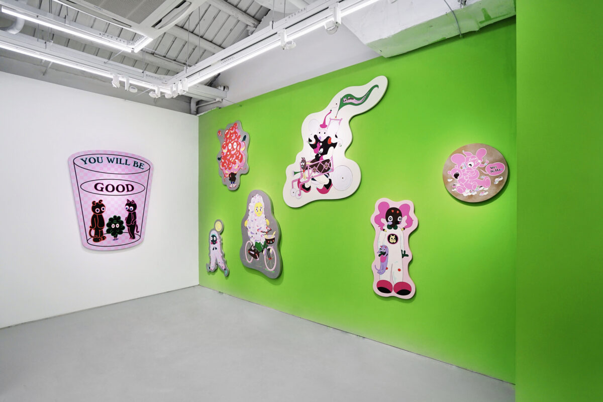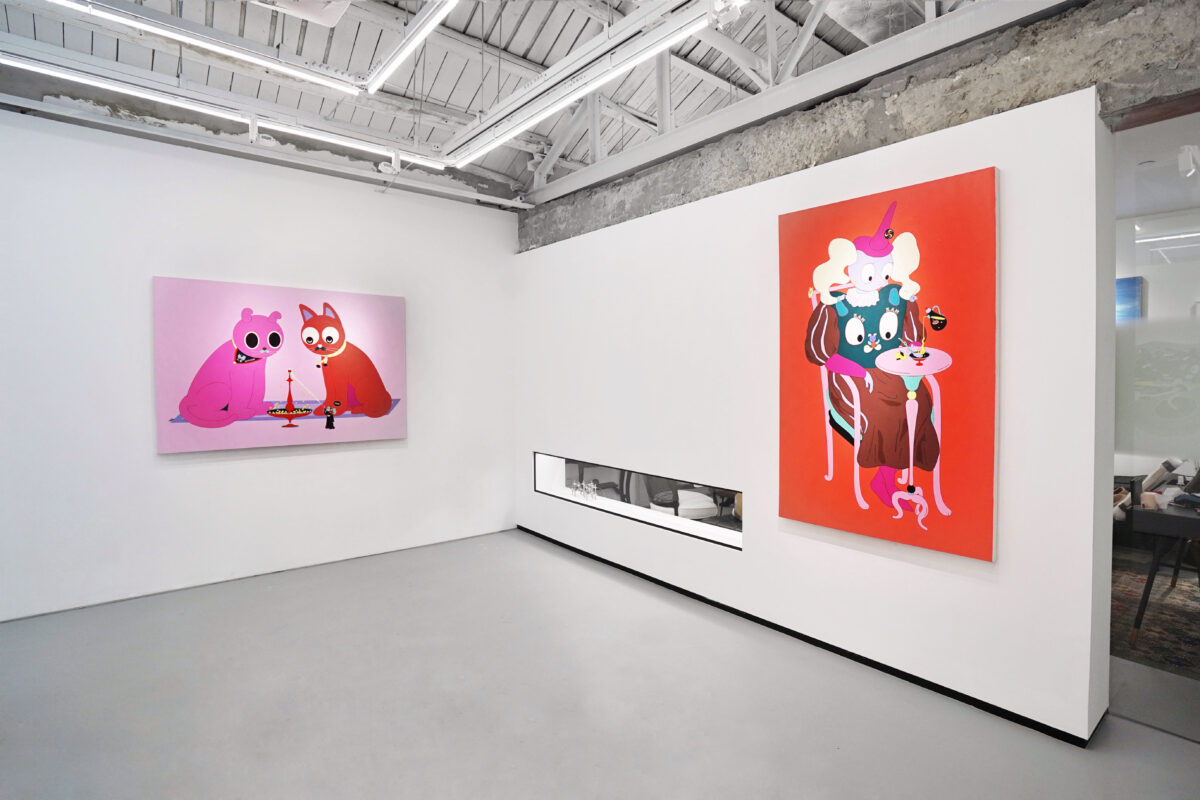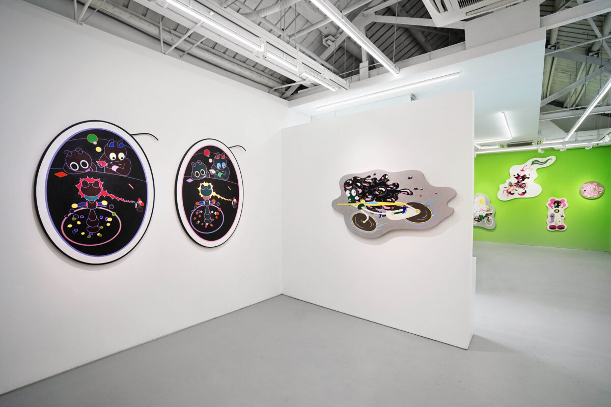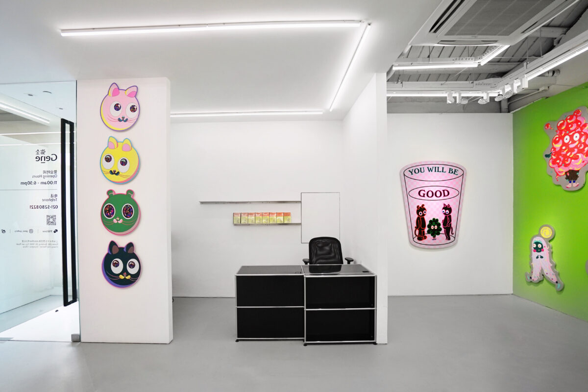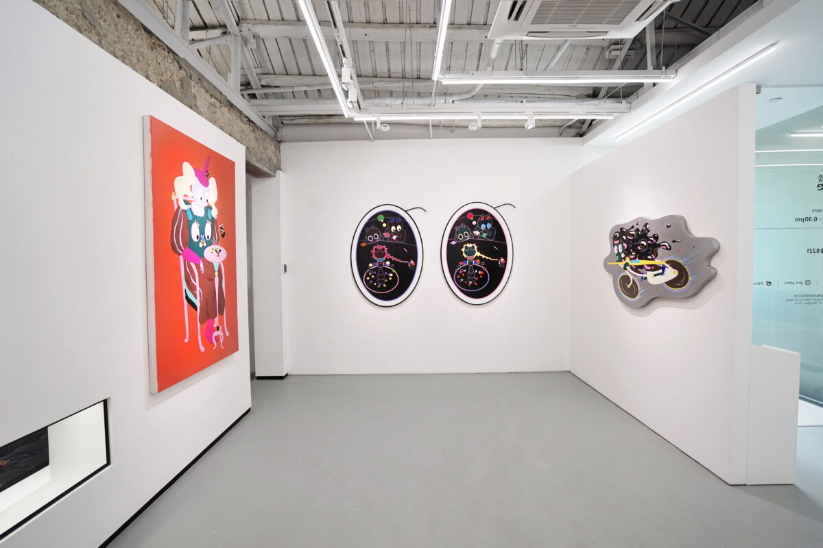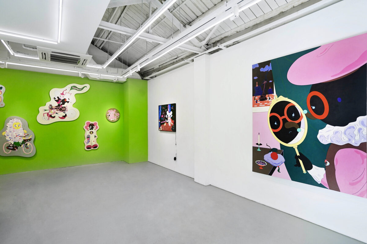 Shang Simin’artworks, in terms of its aesthetic schema, will make people think of “Superflat” features at first glance: color bright, two-dimensional space and flat outline. Fictional cartoon characters and specious anthropomorphic animals make the work less serious. Therefore, from the perspective of shape and structure alone, the comic world constructed by these paintings is something anyone can appreciate and get an interesting experience from.