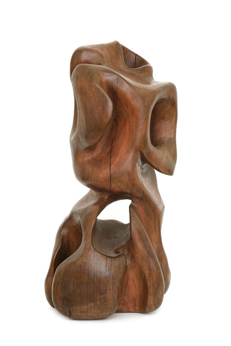 Mao’s practice is the art of finding and hiding. Artists have a passion for collecting animal fossils, tens of thousands of years they were buried under the sand at the bottom of the Songhua river in Heilongjiang province, now in the process of sand-excavating mechanical work was not recovered. He loved the lines of these fossil forms, the primitive lines that time had stripped away or hidden. Since 2013, the artist has started to contact wood carving, which he regards as the core medium of his creation. According to his deep feeling of the form, he hides symbolic interpretation in his creation, leaving only a beautiful but comfortable shape.